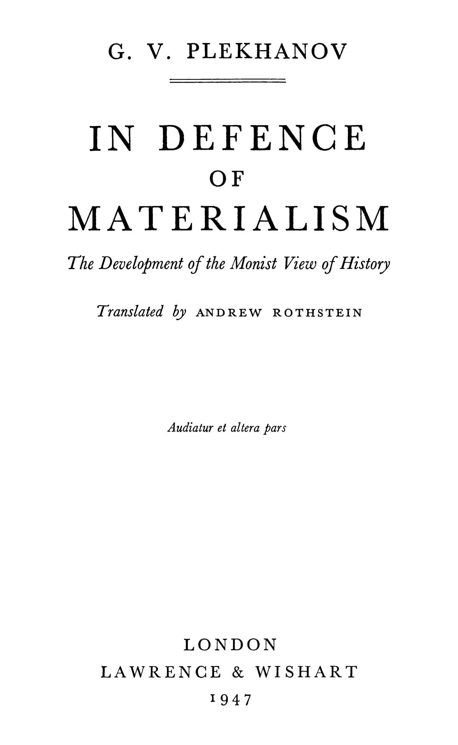 / G.V. Plekhanov – In Defence of Materialism The Development of the Monist View of History